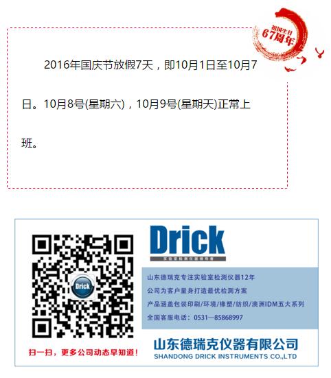 山東德瑞克2016年國(guó)慶節(jié)放假通知